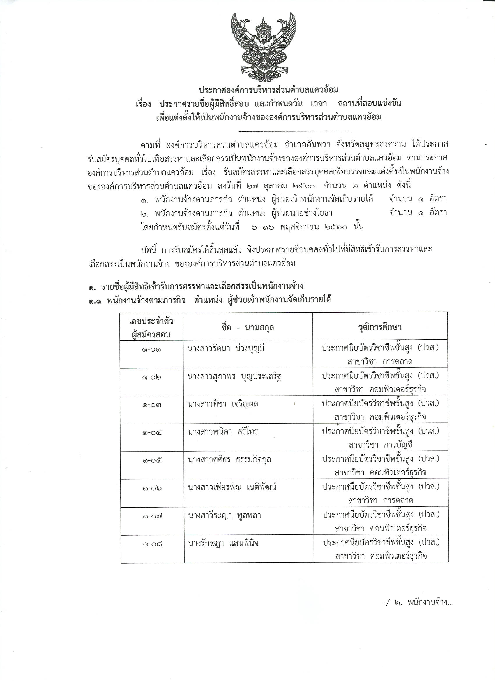 นางนพรัตน์ เอี่ยมสอาด หัวหน้าสำนักปลัด รักษาราชการแทน ปลัดอบต. ปฏิบัติหน้าที่ นายกอบต.แควอ้อม