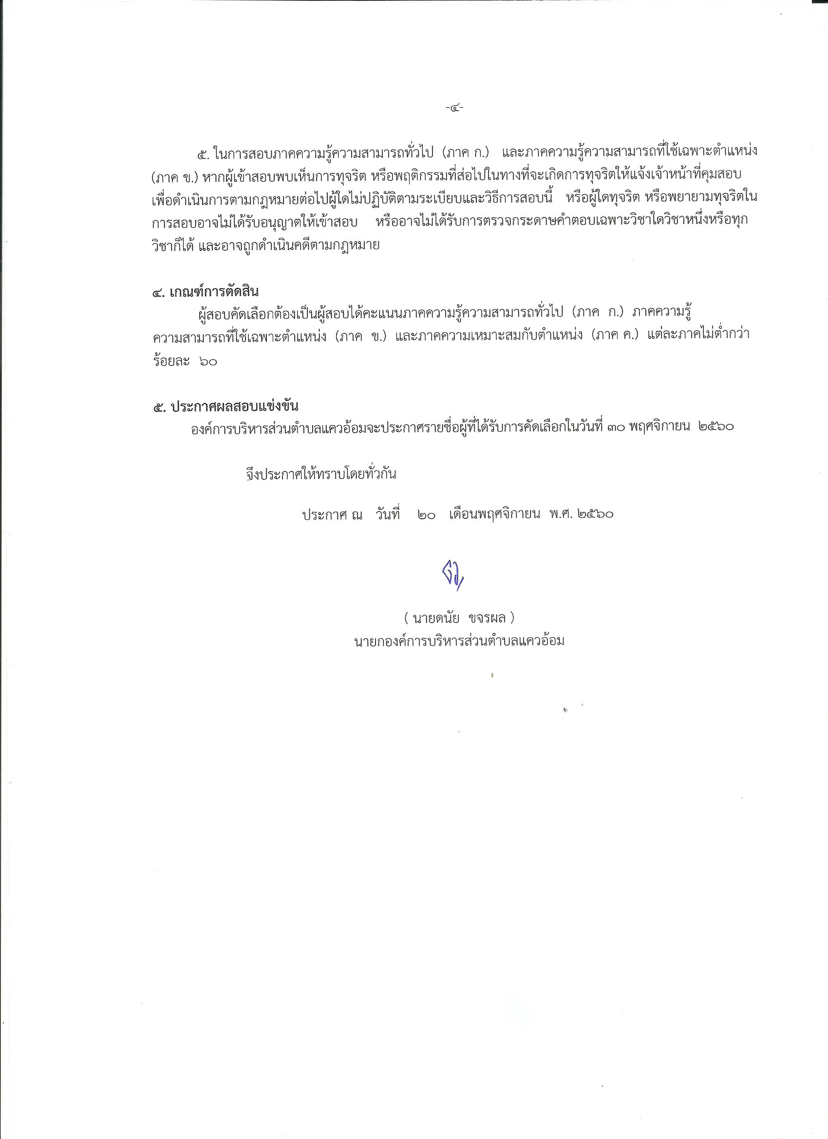 นางนพรัตน์ เอี่ยมสอาด หัวหน้าสำนักปลัด รักษาราชการแทน ปลัดอบต. ปฏิบัติหน้าที่ นายกอบต.แควอ้อม